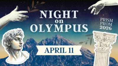 In 2026, Prism Prom ascends with Night on Olympus: a mythic, celestial celebration where queer youth take their place among the gods. Expect drama, elegance, power, and radiance worthy of the heavens. It is guaranteed to be a night of legend.