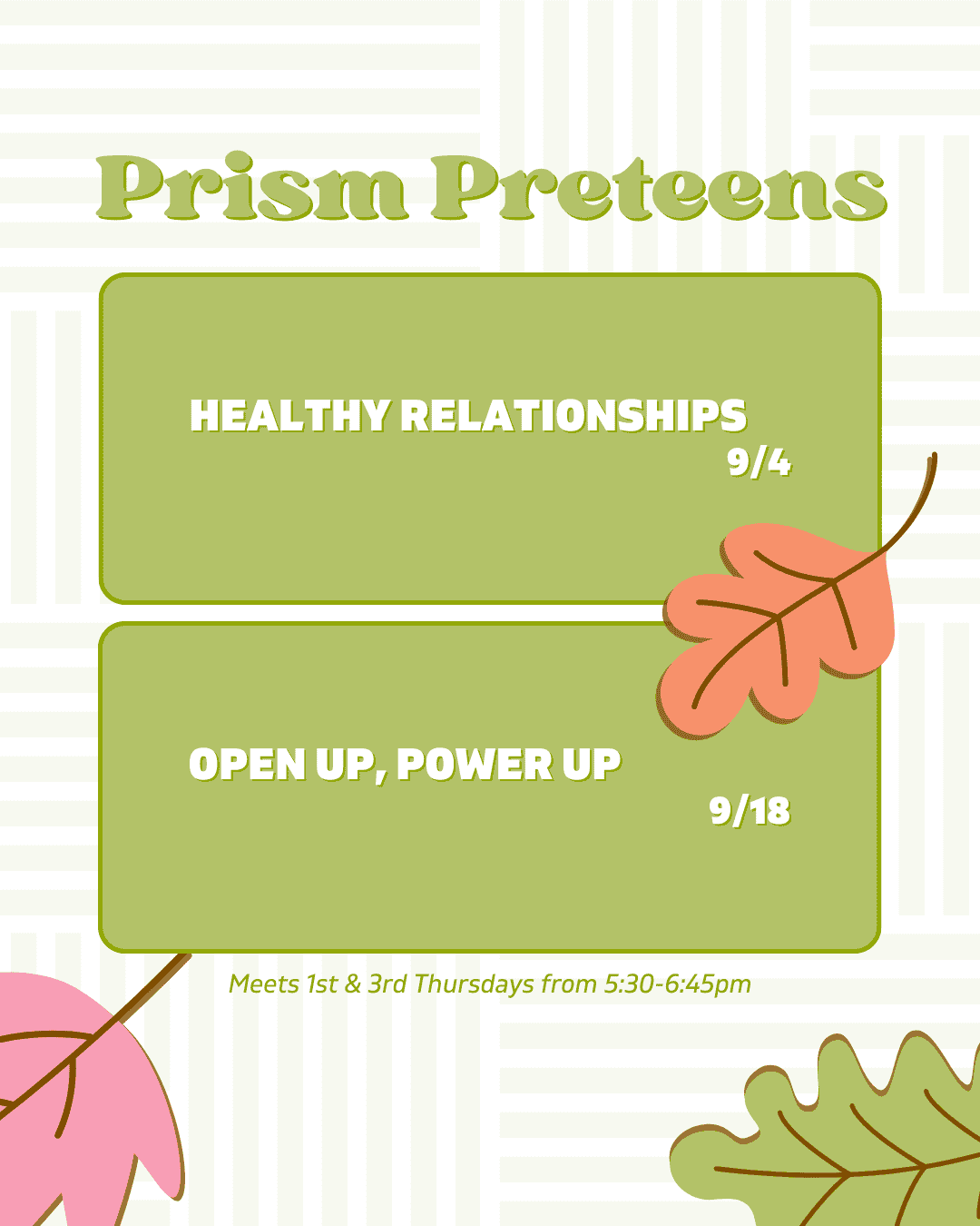 Prism Preteens (Ages 10-13) ✨ Thursdays, September 4 & 18