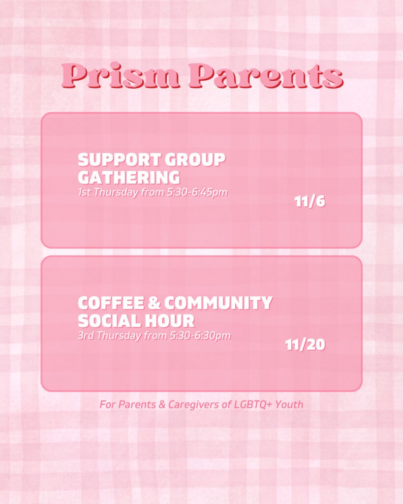 Prism Parents offers a space for caregivers to connect, share, and grow together, supported by volunteers and facilitators who create a welcoming, affirming environment.